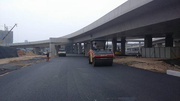 6月23日,二環南四標進行立交橋下快車道瀝青攤鋪。快車道底面層用粗粒式Ac-25面積為12000平方,中面層用中粒式Ac-16面積為14300平方。攤鋪前攤鋪項目部提前計劃,合理安排,共組織4臺攤鋪機,2臺壓路機;攤鋪過程中現場施工人員緊密配合,加強對每一環節檢測控制與管理,保證了攤鋪質量。預計到26日完成此次攤鋪任務。