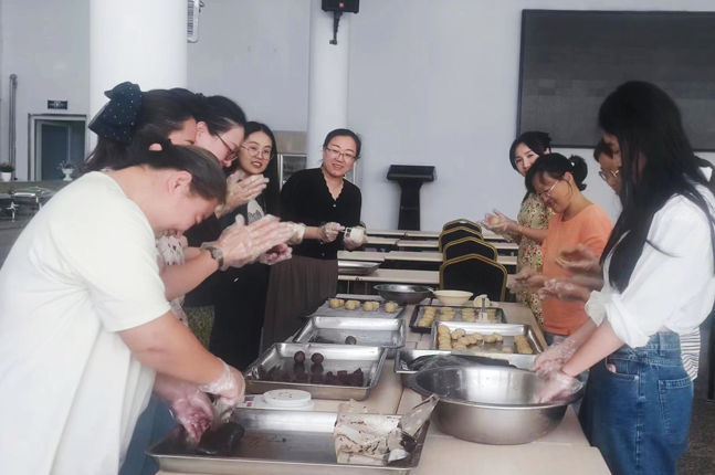 為弘揚中華優秀傳統文化,進一步增進職工交流,近日,匯通集團組織開展“我們的節日·中秋”主題活動,10余名職工參自制月餅活動,喜迎中秋佳節。吃月餅是中國傳統節日中秋節的重要習俗之一。月餅不僅是一種美食,更有著深刻的文化意義和寓意,在準備制作月餅的過程中,職工不僅僅是在體驗一種傳統習俗,更是在傳遞一份深厚的文化情感。自制月餅并不復雜,需要的材料和步驟也相對簡單。首先是要準備好月餅皮和月餅餡料。月餅皮可以用面粉、白糖、植物油等原材料制成,而月餅餡料則可以根據個人口味和喜好來選擇,此次活動準備了棗泥和豆沙兩種餡料。接下來是制作月餅生坯。取一個餅皮,稍稍拍扁轉圓,放上一個稱重符合標準的餡料,然后右手將餡
