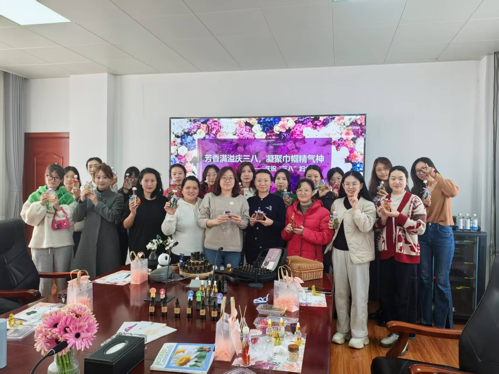 在第115個(gè)“三八”國(guó)際勞動(dòng)?jì)D女節(jié)來(lái)臨之際,為豐富女職工精神文化生活,匯通集團(tuán)于3月7日下午精心組織了一場(chǎng)溫馨且充滿(mǎn)創(chuàng)意的DIY香薰制作活動(dòng),吸引了眾多女職工熱情參與。活動(dòng)現(xiàn)場(chǎng),工作人員精心準(zhǔn)備了豐富的材料,從各式各樣的香薰精油到精美的容器,一應(yīng)俱全。專(zhuān)業(yè)老師詳細(xì)講解了香薰的歷史文化、功效以及制作方法,并在舒緩的音樂(lè)節(jié)奏中帶領(lǐng)大家閉眼感受香薰精油的魅力,大家聽(tīng)得津津有味。在香薰制作環(huán)節(jié),大家充分發(fā)揮自己的想象力和創(chuàng)造力,選擇心儀的精油,輕輕滴入容器,再小心翼翼地?cái)嚢瑁瑢⒏苫ā⑾懔系仍厍擅钊诤希骶咛厣南戕棺髌繁阍谂毠兊那墒窒抡Q生了,有的散發(fā)著清新的果香,仿佛把春天的果園裝進(jìn)了瓶子;有的