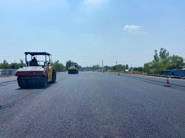 6月19日,匯通公司承建的起步區智慧物流園二期一標段英才學院南路西段青寧溝橋梁橋面中粒式瀝青攤鋪圓滿完成?! ∮⒉艑W院南路西段青寧溝橋梁采用鋼混組合梁,全長92米,攤鋪面積2000平方米。橋梁不分幅,總寬33米,橋梁為直斜橋,斜交角71°。施工過程中人員分工、機械設備調配、現場組織管理井然有序,對瀝青攤鋪溫控和厚度、碾壓工藝等進行嚴格把關?! ∮⒉艑W院南路西段青寧溝橋橋面瀝青攤鋪完成,標志著項目邁入了附屬施工的新階段,為項目建成通車打下堅實基礎。