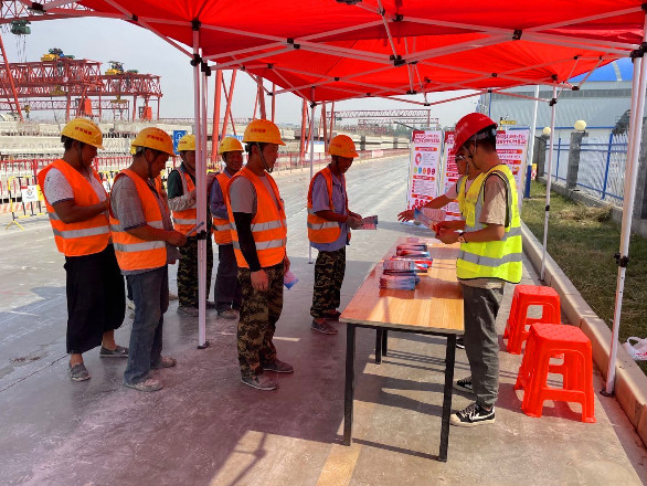 為扎實做好分公司“安全生產月”推動工作,全面提升安全管理水平,6月16日,分公司11個在建項目開展“安全月咨詢日”活動,積極宣傳“遵守安全生產法,當好第一責任人”主題,普及安全生產知識?! 〈舜位顒庸仓谱靼l放安全生產法、崗位職責清單、安全月主體宣傳、消防安全知識、用電安全知識、施工現場注意事項、職業健康安全七類安全手冊1000余本,同時,對施工人員進行現場安全教育及答疑?! ⊥ㄟ^此次“安全咨詢日”活動,讓施工一線管理人員及配屬隊伍工人進一步了解安全生產的重要性,增強安全生產管理的意識及責任心,提高勞務人員的安全素質和業務水平。接下來,分公司將繼續圍繞“遵守安全生產法,當好第一責任人”主題,