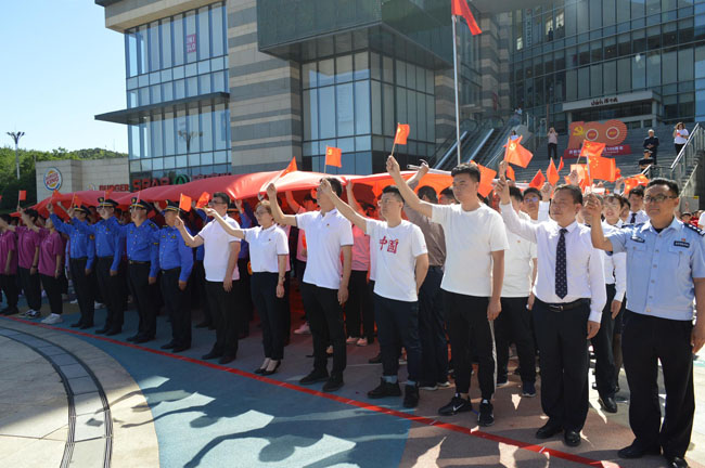 宣誓完畢后,所有人共同合唱《沒有共產黨就沒有新中國》,伴隨著嘹亮的歌聲,一面黨旗在隊伍上面緩慢展開,站在黨旗下,很多黨員眼泛淚花,內心的自豪感油然而生,感謝偉大的黨、偉大的祖國為我們創(chuàng)造了這么美好的幸福生活,這也把整個活動推向了高潮。