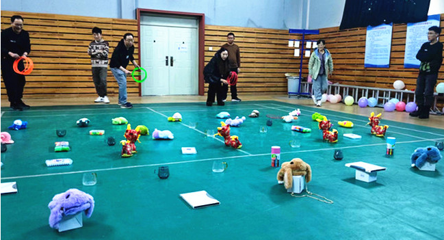 活動現(xiàn)場一片歡聲笑語,數(shù)十條以傳統(tǒng)文化、動植物、成語俗語、生活常識等內(nèi)容為謎底,融合知識性、趣味性為一體的燈謎懸掛在墻上供大家競猜,凡猜中者,撕下燈謎可換取10個套圈參加套圈活動,套中即可獲得獎品,沒有套中的職工可以兩人組隊,進行運氣球比賽,從A點到B點,一次運球最多的一隊便可再得10個圈繼續(xù)參加活動。職工熱情高漲,認(rèn)真完成每一項游戲,現(xiàn)場歡聲笑語場不斷。